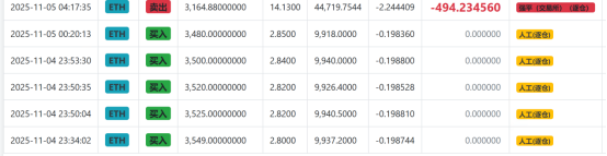 这个就是自以为是的人工单 ,2025.11.5发生的,自己觉得有把握,最后被交易所强平。